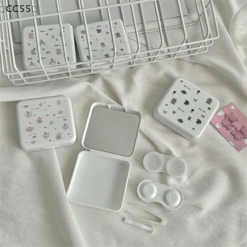 〔CC55〕Portable Cartoon Dog Rabbit Eye Contacts With Mirror Contact Lens Case Colored Lenses Container Box For Party Travel Set