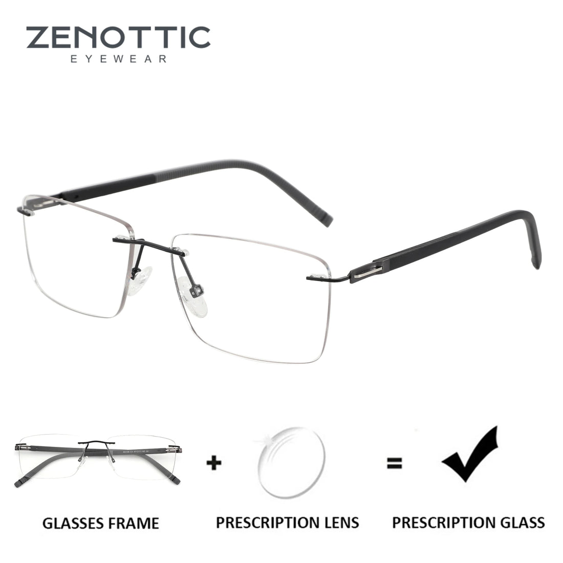 ZENOTTIC Fashion Rectangle Rimless Prescription Glasses High-quality Anti Blue Light/Photochromic Optical Eyeglasses for Men