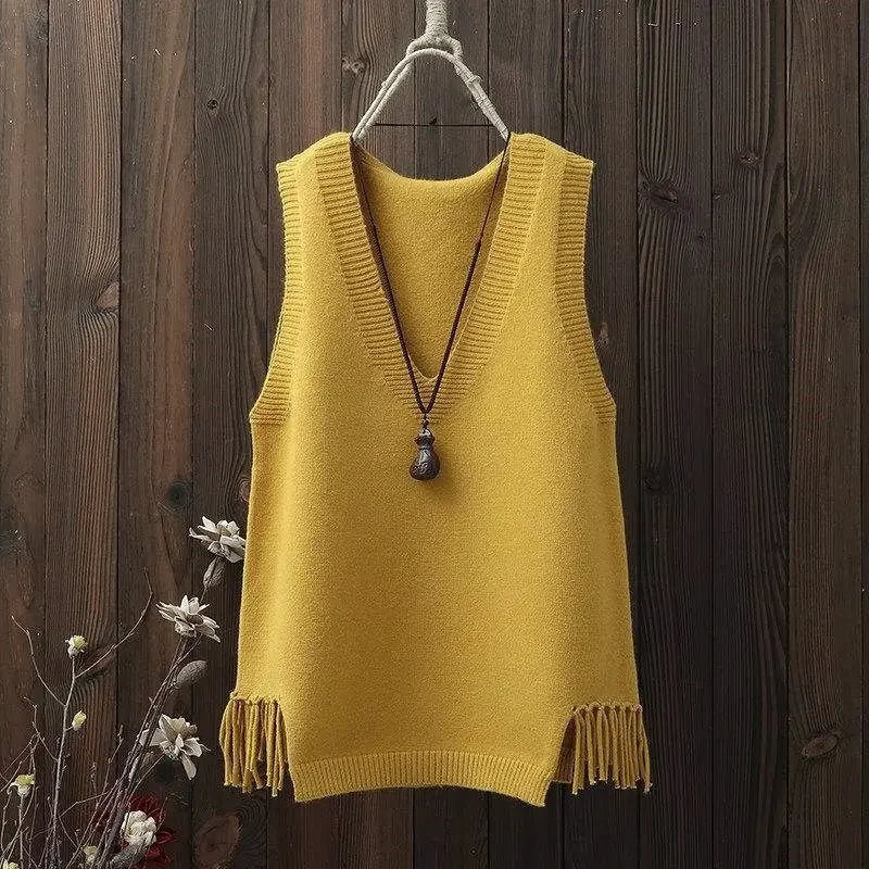 Woman Jacket Vest Spring V-neck Women's Short Knitted Tassel Vest Chaleco Mujer