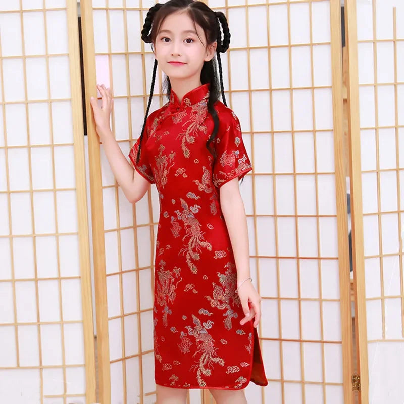 Fashion Modern Cheongsam Children Girls Dresses Summer Baby Casual Qipao Costumes Kids Clothes Chinese Style Girl Dress Vestidos