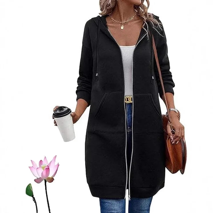 2025 New Fashion Women's Solid Color Zipper Long Sleeve Hooded Casual Trendy Loose Pocket Thicken Coats Female Clothes Jackets