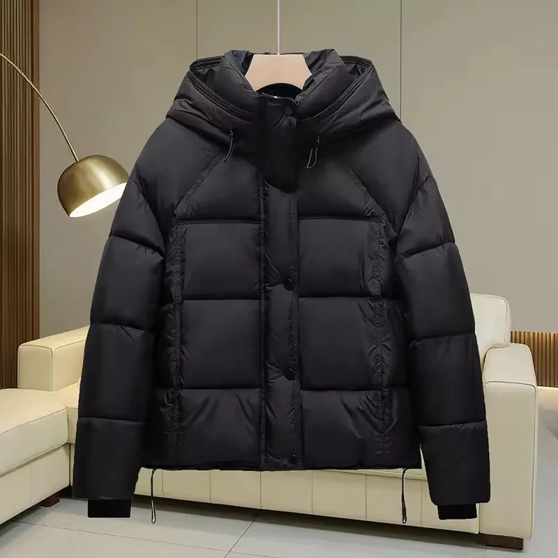 2025 New Short Cotton-padded Clothes Women's Hooded Parkas Loose Winter Jackets Warm Thicken Lady Casual Outerwear
