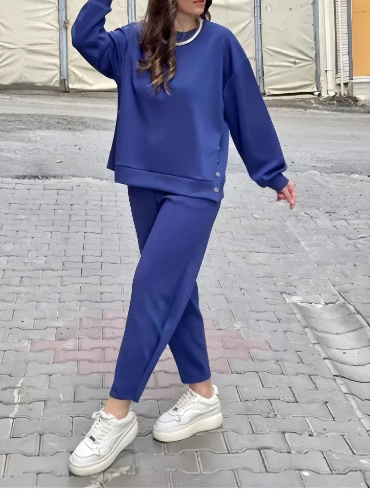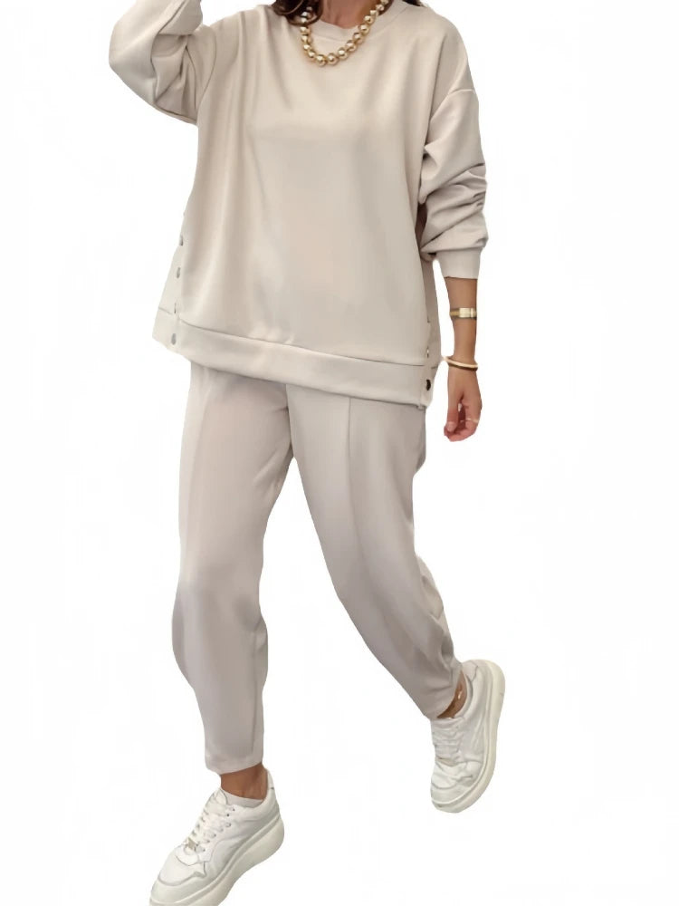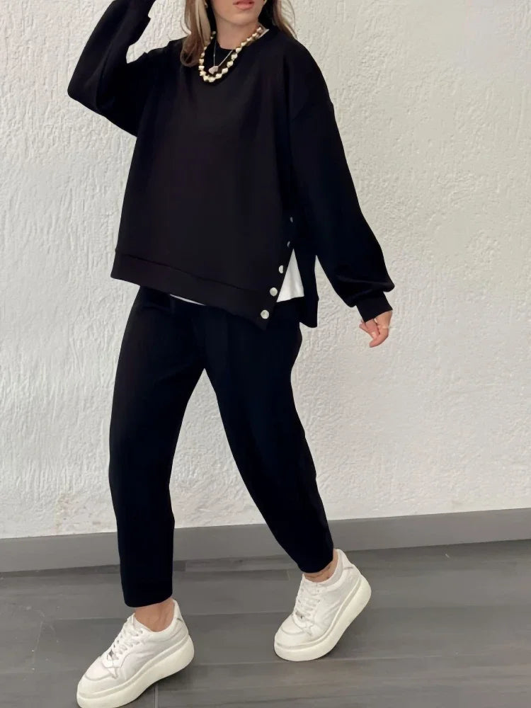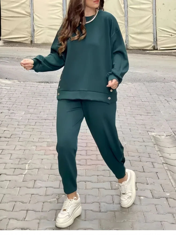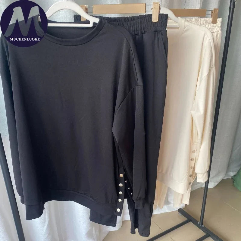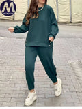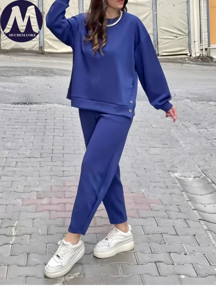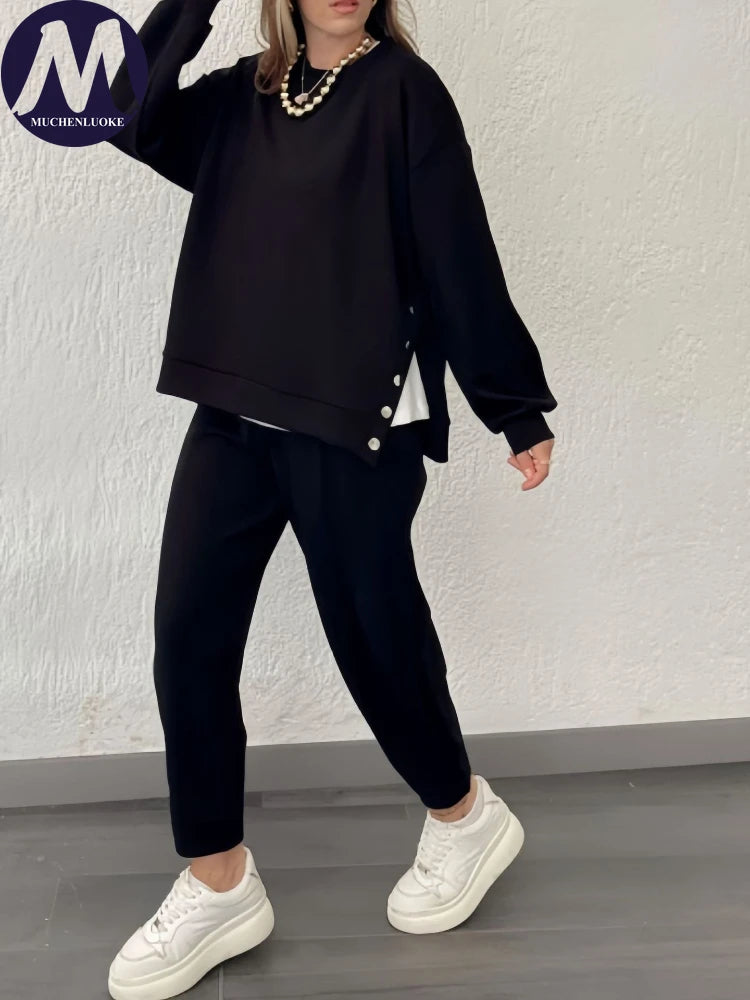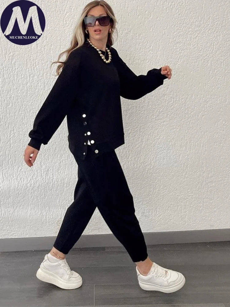 2 Pieces Set for Woman Autumn Winter Elegant Long Sleeves O Neck Sports Tops Suits Fashionable Casual Loose Pencil Pants Sets