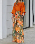 2024 Summer New Women's Clothing Set Lantern Sleeves Loose Top Printed Wide Leg Pants Two Piece Set Casual Ladies Trouser Outfit