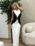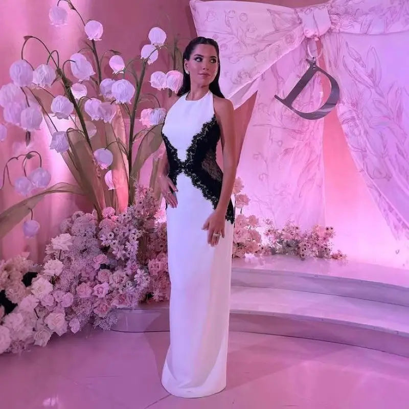 Elegant White Long Dress Women's Halter Backless Casual Black Lace Patchwork Slit Maxi Dresses Evening Party Cocktail Prom 2026