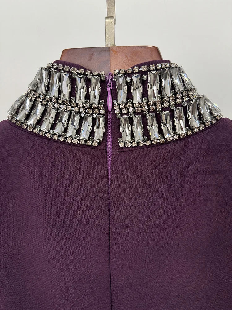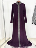 HIGH STREET Newest Fashion 2026 Designer Party Women's Short Sleeve Stand-up Collar Luxurious Diamonds Beaded Long Maxi Dress