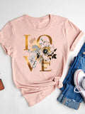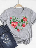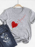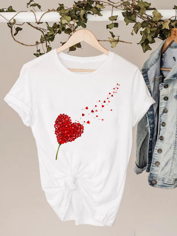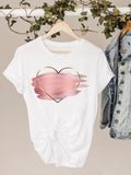 Watercolor Love Heart Sweet Fashion Short Sleeve Print T Shirt Tee Basic Clothing Summer Top Graphic T-shirt Women Clothes